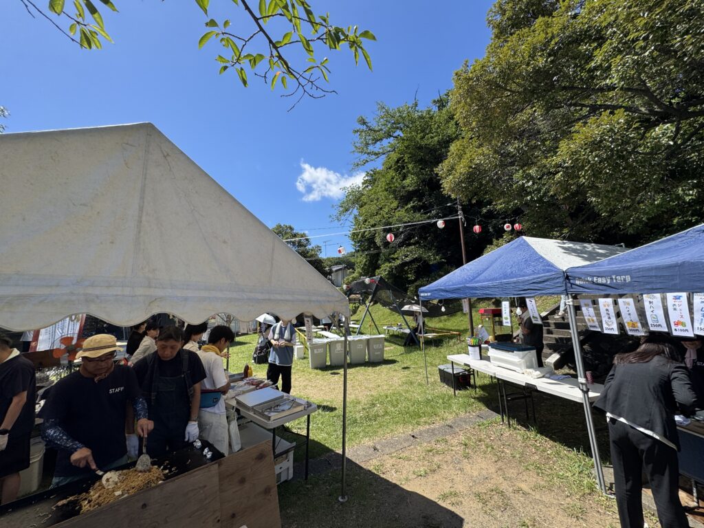 会場では、自治会の人たちがテントの下で忙しそうに動き、鉄板の上では焼きそばがジュウジュウと音を立てています。