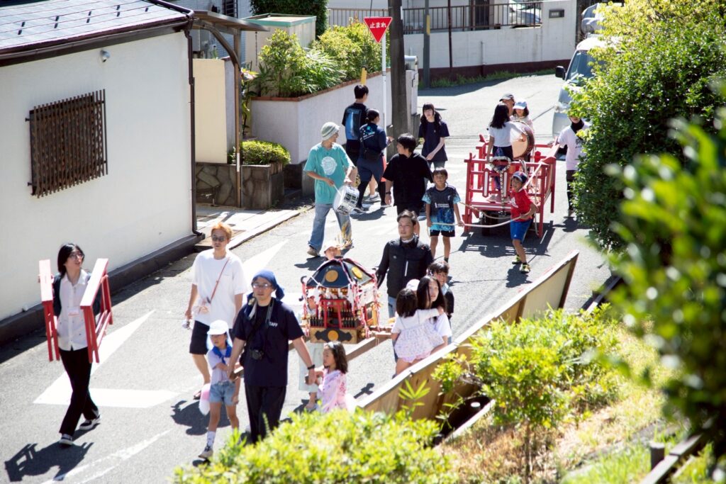 坂の上から見えたのは、小さな神輿を担ぐ子どもたちの姿でした。